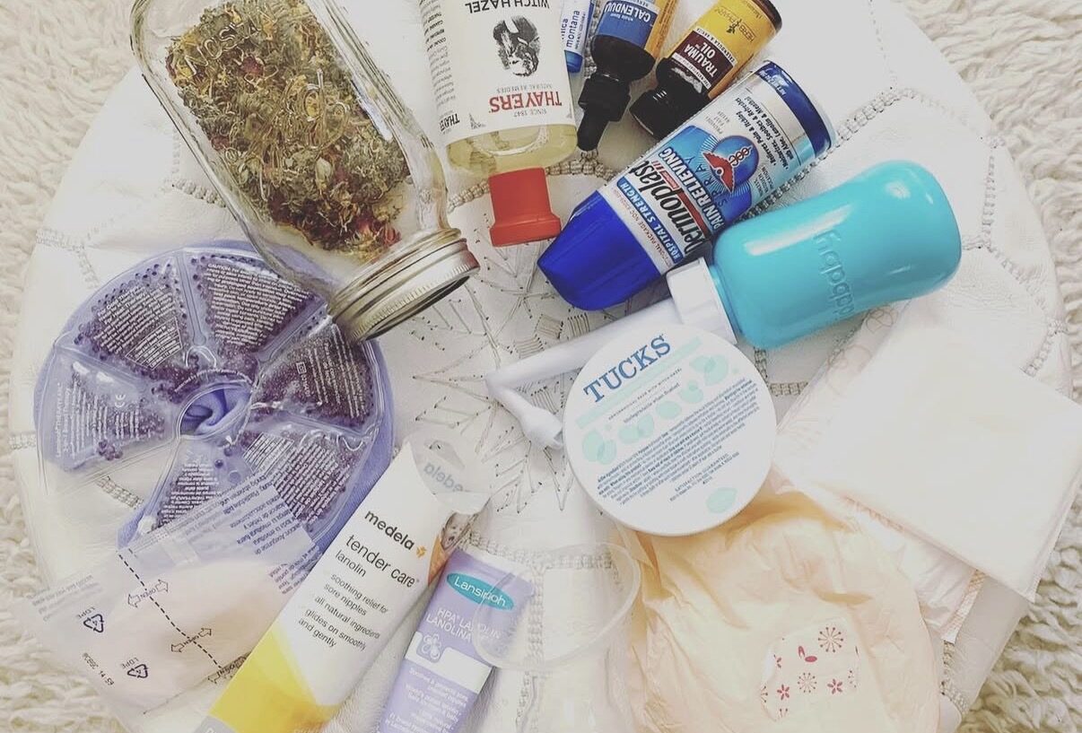 - Herbal healing spray, you can spray onto your pads or directly on your perineal area: Earth Mama.